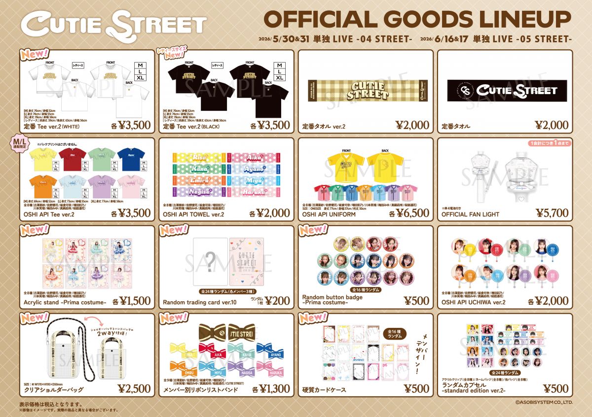 5/30(土)神戸を皮切りにスタートするCUTIE STREET 単独LIVE -04 / 05 STREET- のアイテムの一部ラインナップ発表!そして先行通販も行います!